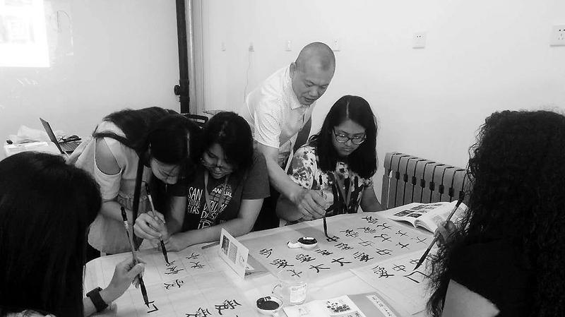2017年6月在美国德克萨斯大学圣安东尼奥校区为大学生教授中国书法。