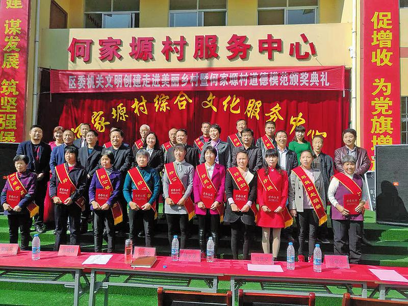年末岁首,正值寒冬来临之际,何家塬村群众文化广场聚集了成百人,张建朝面带灿烂的笑容,身挂鲜红的“自强自立模范”绶带,手捧着荣誉证书和奖金,高兴地说:“我一个土农民,没上过几天学,还是一个贫困户,如今还能领上奖状和奖金。”原来是商州区纪委驻村工作队组织开展“区委机关文明创建走进美丽乡村暨何家塬村道德模范颁奖典礼”活动。