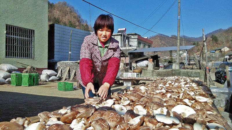 十二月十六日,商南县城关街办曹营社区上店组香菇种植户丁桂香在晾晒香菇。该社区引进福建﹃香菇31﹄新品种,所产香菇块儿大,产量高,增加了种植户收入。(记者 贾书章摄)