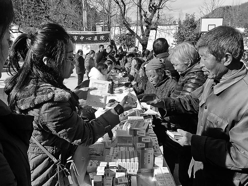 12月26日,商州区三岔河镇七星村开展入股分红暨脱贫户表彰活动,给89户贫困户每户发放食用菌分红股金2000元,并为9户脱贫户颁发了脱贫光荣牌和礼品。同时,邀请商洛市中心医院专家为村民义诊。(记者柯岩摄)