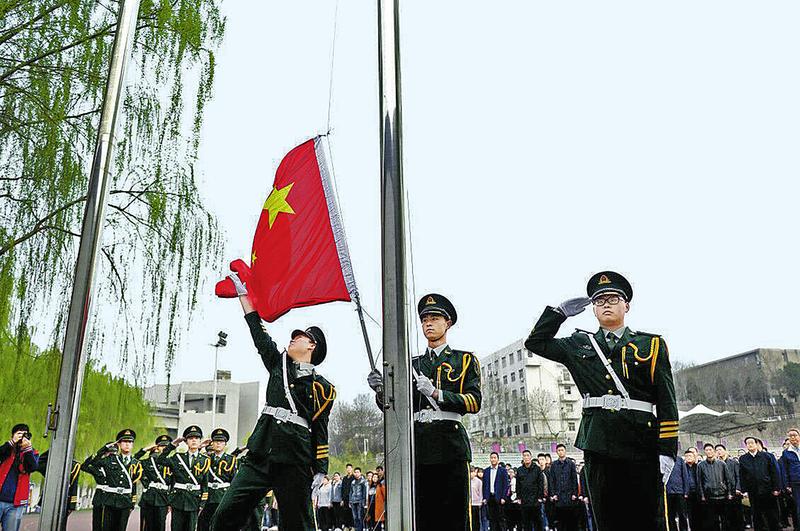为贯彻落实十九大精神、《国旗法》《国歌法》,加强爱国主义教育,商洛学院从3月下旬开始,组织师生每周轮流、每天规范升降国旗,并在每周一举行升国旗仪式。(记者吉文艳摄)