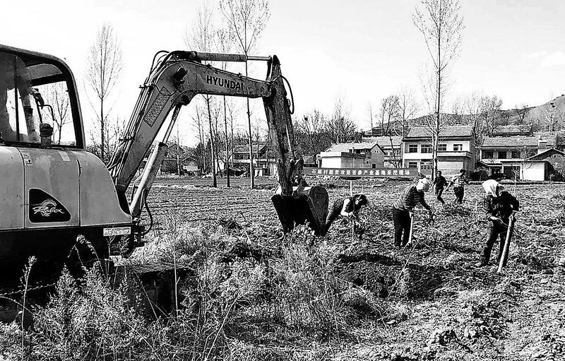近日,洛南县城关街办石塬村群众正在用机械挖苦参。据了解,石塬村通过“党支部+专业合作社+农户”的模式,集中连片发展苦参产业800亩,种植贫困户达40户,预计产值达150多万元,将有效带动贫困户增收脱贫。(记者王倩摄)