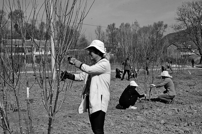 近日,洛南县古城镇八一村的100多名留守妇女正在忙着栽种景观树。陕西金盛元生态农业有限公司投资800多万元,在八一村流转土地300多亩,栽种美国红枫、欧洲小叶椴树等景观树4万株,定向销往南方城市,每月可为每名务工村民增收1500元。(记者 吉文艳 见习记者 张珍珍 摄)