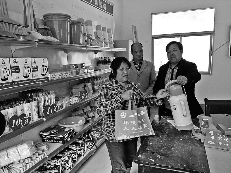 4月10日,柞水县红岩寺镇红安村组织贫困户,对全村河道垃圾进行清理,贫困户得到积分,凭积分卡到“爱心超市”兑换相应积分价值的物品。