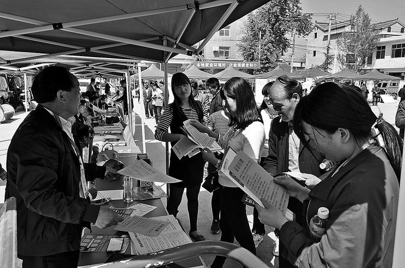4月19日,洛南县人社局在景村镇举办民营企业招聘活动,县内40多家企业和4家劳务机构提供了1500多个就业岗位,1800多人现场求职应聘,签订就业意向183人。(刘卫锋 谢勇 摄)
