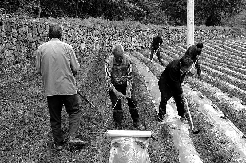 洛南县高耀镇龙河村依托铁锁关种植养殖专业合作社,实施“党支部+村级集体经济组织+‘三变’改革+贫困户”发展模式,流转土地1000亩,发展黄花菜、朝天椒、大樱桃、五味子、食用菌等五大产业,引领全村166户580名贫困户增收、致富。图为村民正在黄花菜地里套种朝天椒。(郭夏季 樊菊荣摄)