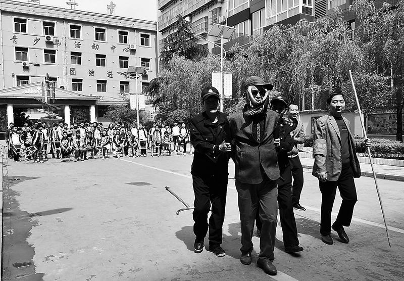 近日,山阳县城区二中举行“防暴反恐演练”。恐怖分子冲进校园后保卫处迅速疏散学生,经过三道防线后恐怖分子被制服并扭送出学校。通过该活动进一步提高师生的安全防范意识,积累防暴反恐经验。
