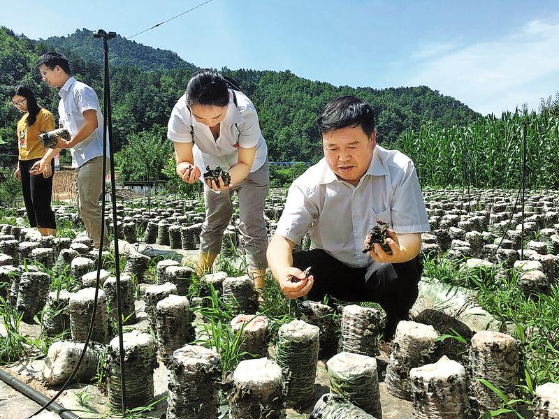 7月1日,柞水县人社局全体党员干部深入下梁镇金盆村地栽木耳基地,开展帮助贫困户采摘木耳活动,庆祝建党97周年。活动结束后还看望慰问村上老党员,送去党的关爱和温暖。(叶章忠 陈明亚摄)