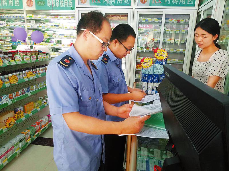 近日,丹凤县市监局对城区医疗机构和药品经营单位进行质量安全专项监督检查,进一步规范医疗机构以及药品经营单位的经营行为,排查医疗器械安全隐患,保障群众用药安全。(记者 谢非 摄)