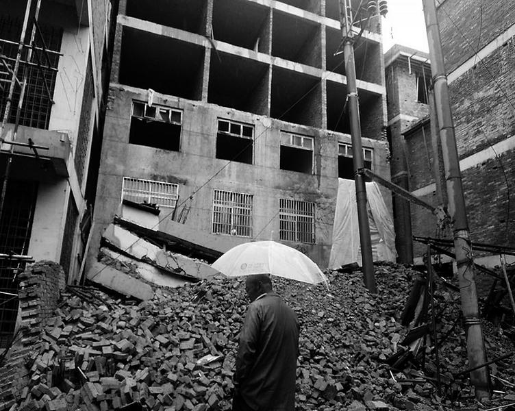 记者在现场看到,坍塌的楼房位于东街社区的城中村内,占地约百平方米,每一层的横梁叠压在一起,脚手架、砖块、水泥块随处可见,楼体已经变成了一堆废墟,周围还有在建的建筑,也受到了坍塌的影响。