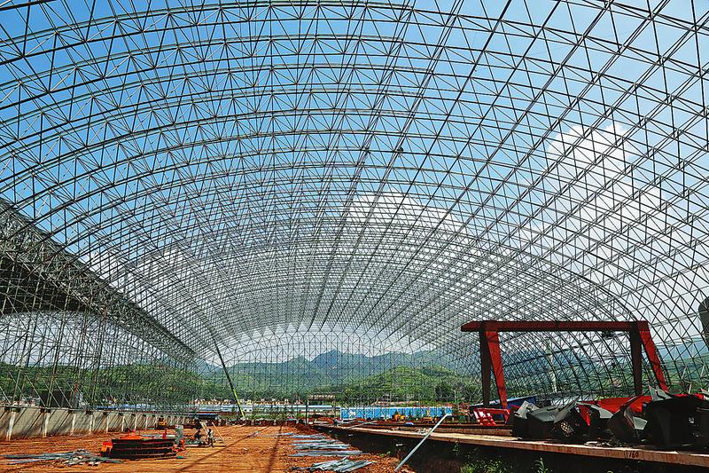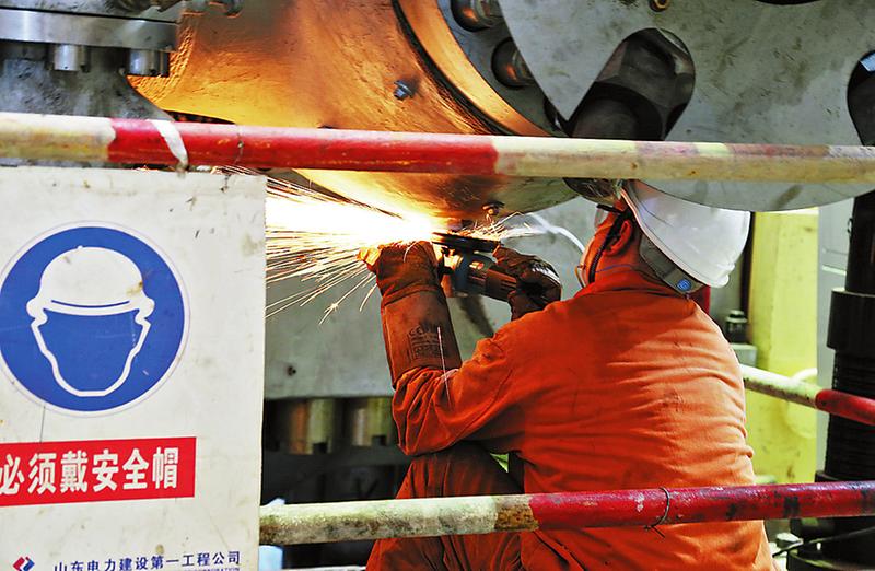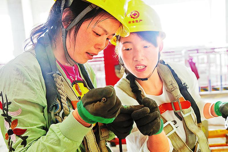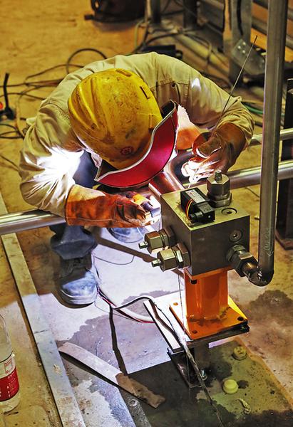 商洛电厂区内机车穿梭轰鸣,塔吊旋转起落,各施工点的露天施工人员,他们扎钢丝、截钢筋、裁彩钢,搭桁架、吊装构件,切割焊接、打磨抛光,火花四溅,电焊工都拿着防护罩,认真地焊接钢构件。“焊接是技术活,焊接部位不准或焊接度不够,容易埋下隐患。”许多工人戴着厚厚的手套,来自四川的一名张姓师傅告诉记者:“铁皮钢筋晒一晌午就会发烫,不戴手套抓不紧实易划伤。”现场作业的工人都戴着安全帽,身着厚实工装。令人头皮发麻的是野外高空作业,在储煤仓项目建设处,工人们爬上高大的钢构架上,头顶耀眼的烈日,将一块块长达12.8米的彩钢板拼装焊接,在下面指挥施工的李师傅说,高空高温作业是高危活,一般人上去就会头晕恐高,而干这个活上去后最麻烦的是无法上厕所,为了不上少上厕所,干活人就要尽量少喝水,暴晒在大太阳下不喝水会有脱水的危险。可这些人“为了商电两台机组早日投产发电,也都拼了,再苦再累,咬咬牙换班干,苦点累点没啥!”