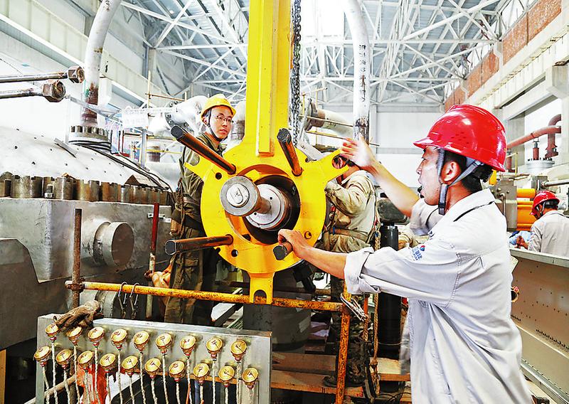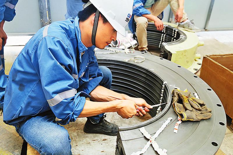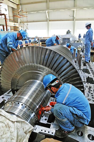 露天如烧烤,室内似蒸笼。在纵横交错的锅炉钢架内,人一动就大汗淋漓。锅炉零米一次风机调试现场,密不透风、闷热难耐,设备部锅炉专业人员个个汗流浃背,正在细心地调试设备。因为天气热,身上的工装湿了又干,干了又湿,锅炉专业主管张岩的脸上流出了一道道汗渍,衣服也早已被汗水浸湿,但丝毫不影响他的工作热情。在汽轮发电机主厂房,来自广东火电厂的技术人员,正在分组安装主设备,精心擦拭清洁汽轮机大轴承,调整轴封间隙,确保精准安装。
