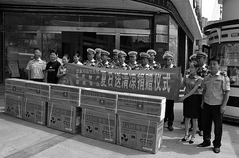 近日,洛南县公安局交警大队收到了由洛南县仓圣酒店联合鑫苑地产、绿城物业等爱心企业“夏季送清凉活动”赠送的五台空调,解决了城区中队5个警务休息室的降温消暑问题。(见习记者 张雯靓 摄)