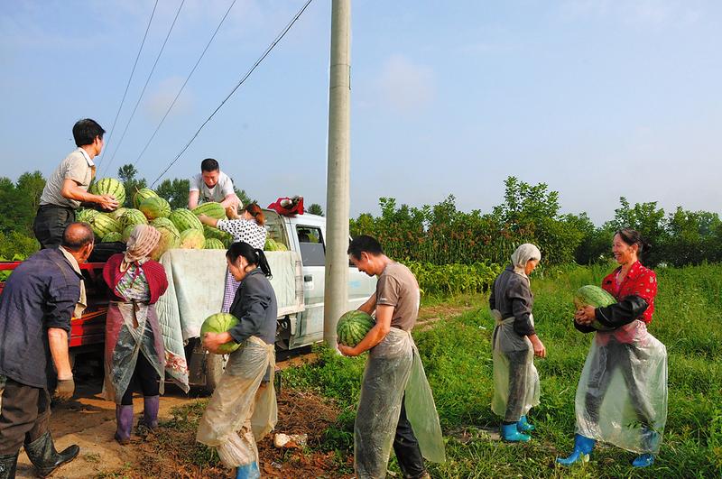 洛南县景村镇景村街社区居民、务瓜能手薛书才今年在车塬村承包土地15亩种植西瓜,预计可收入六七万元。(郭夏季 樊菊荣 摄)