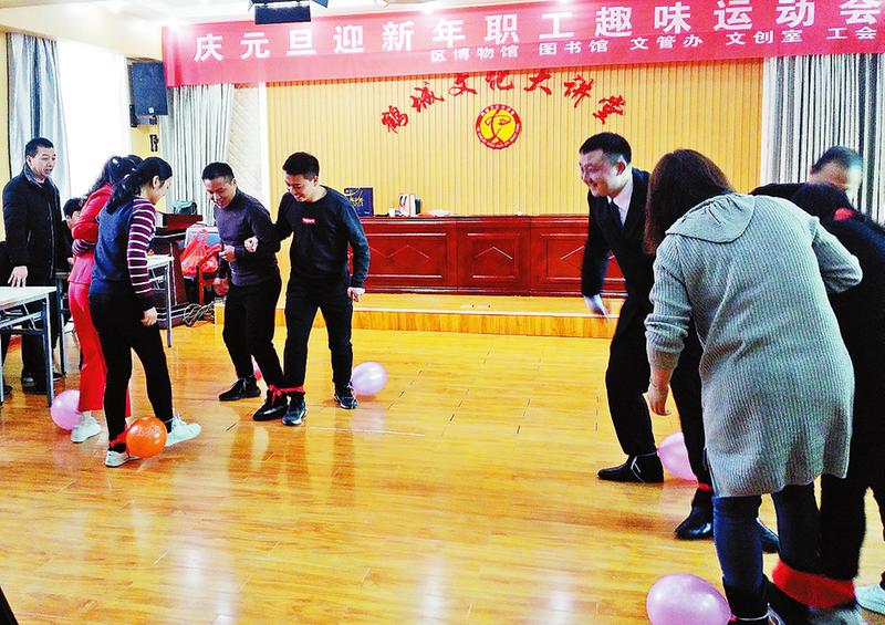 12月29日,商州区博物馆、文管办、图书馆、文创室四个单位工会组织职工举行庆元旦趣味运动会,并穿插表演诗歌朗诵、魔术、独唱等节目。(陈芬 摄)