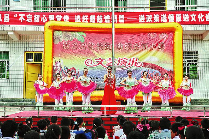 精准扶贫,文化先行。丹凤县精心编排以先进典型人物和脱贫致富事迹为素材的小戏、舞蹈、小品等文艺节目,每年开展100多场次贴近群众、贴近扶贫、贴近生活的“扶志扶智”主题的专项文艺演出,给每一个贫困村送去了优质的精神食粮,带去了美好的希望,带来了欢快的笑声。
