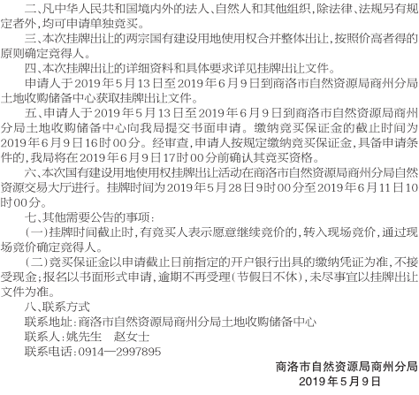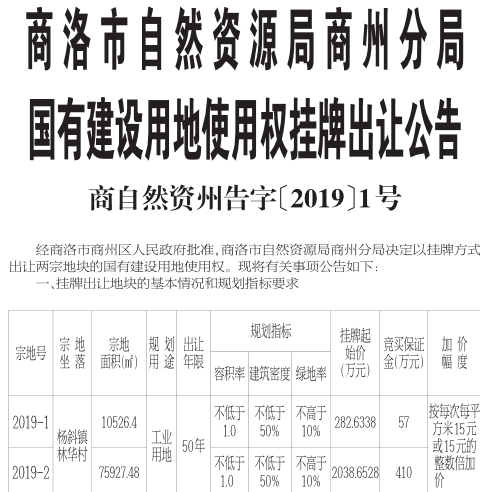 商洛市自然资源局商州分局国有建设用地使用权挂牌出让公告