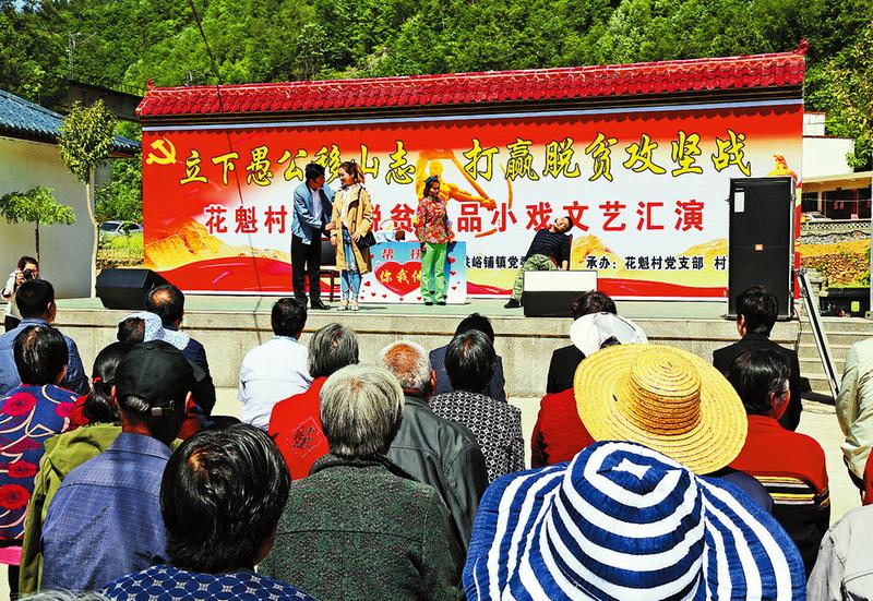 近日,丹凤县铁峪铺镇花魁村举办精神脱贫小品小戏文艺汇演,充分展示了广大群众在脱贫攻坚中不等不靠、自力更生和干群团结拼搏的精神风貌,丰富了群众的精神文化生活。(记者张瑞摄)