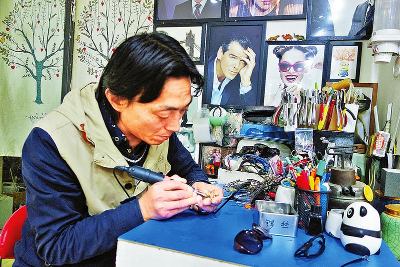 在眼镜店的后面,有一个四五平方米见方的空间,这是张兆理的工作室,里面摆放着各式配镜和修理眼镜的工具和仪器,就像一个小小的眼镜加工厂。