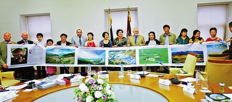 6月7日,在中俄建交70周年、普希金诞辰220周年之际,俄罗斯作家协会、莫斯科作家协会、欧亚文明对话基金会、丝绸之路国际诗人联合会主办的2019俄罗斯普希金国际诗歌艺术节暨第二届丝绸之路国际诗歌艺术节,在莫斯科民族宫举行。我市作家董发亮随中国诗歌代表团参加此次活动,并荣获“欧亚文化交流杰出贡献奖”,其《丝路·丝路》摄影作品长卷被莫斯科民族宫收藏。(冀彬玲 摄)