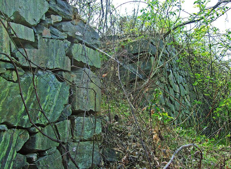 北面连着远山,人工开挖出一条深10米多宽7米多的壕沟,石砌寨墙隔断山脊,这里是寨的尾部。