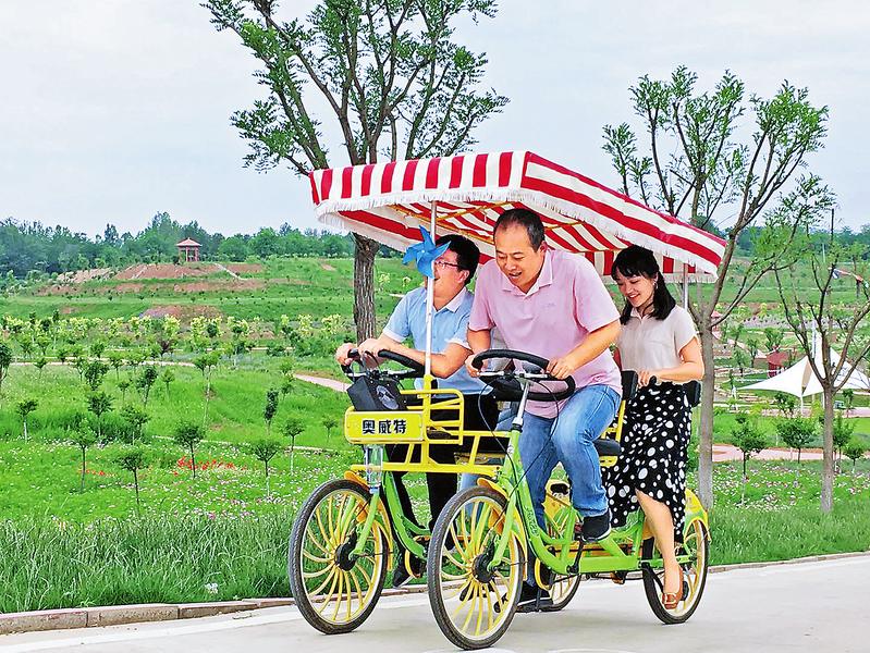 由于“锦绣大地”项目属于户外观光景点,自行车能让游客轻松愉悦地快速游览整个景区。据了解,景区一共配备了110辆自行车,可让游客按人数自由组合在景区内骑行。在游览车之外,自行车为游客提供了另一种更加绿色健康的体验方式。