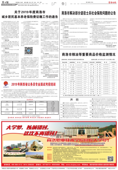 关于2019年度商洛市城乡居民基本养老保险费征缴工作的通告