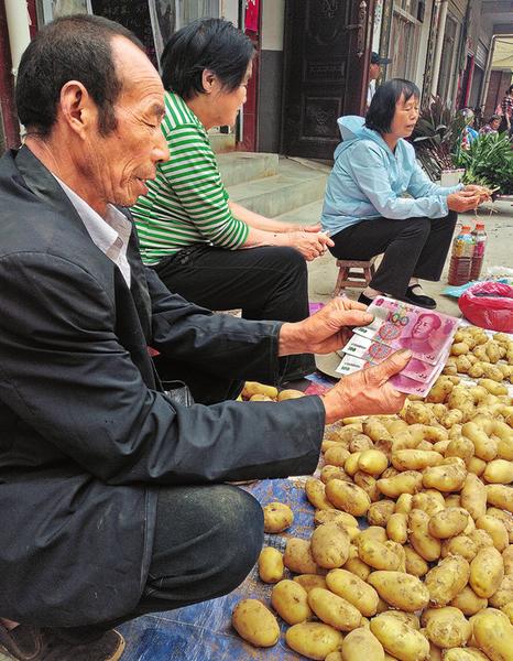 六月十三日,商州区沙河子镇郭村贫困户老郭在城区牛斜街道卖洋芋时被三个小伙子哄骗,一下子就收到了三张同一编码的百元假钞。在此提醒市民多了解掌握一些反假币的相关知识,谨防上当受骗。(陈芬摄)