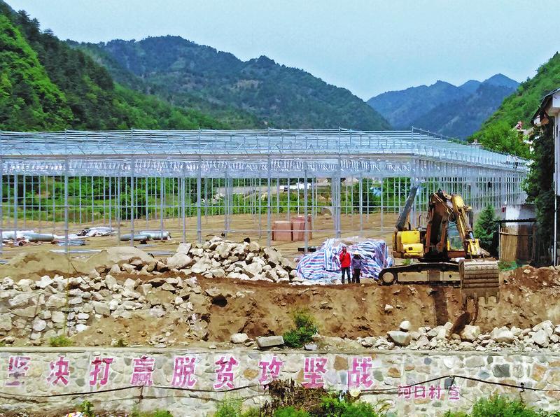 天麻特色小镇项目位于峦庄镇河口村,只见十几台大型机械声振林樾,挖掘机挥舞着巨臂在不停地开挖土方,轧路机推动着笨重的钢轨反复夯实着路基,运料车载着砂石料和建筑材料来来往往,忙碌的工人们挥汗如雨。峦庄镇党委书记李龙指着正在建设的大棚说:“那边是天麻种植区,将建成6个种植暖棚和2个智能温室育种大棚。这边是核心区,要建成天麻加工厂、天麻博物馆和天麻观光区。”据介绍,自脱贫攻坚战打响以来,峦庄镇党委、政府坚持以党建引领脱贫攻坚,以党建促产业发展,充分发挥基层党组织头雁引领作用,扶持带动群众依靠发展天麻、猪苓、连翘等中药材,使全镇形成了以天麻为龙头的中药材产业格局,让大部分群众摆脱了贫困。
