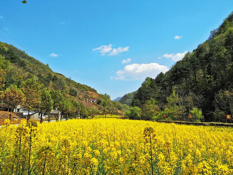 油菜花开的季节,笔者来到蒿坪村,只见这里的山沟野地一片金黄,宛若仙境。在这片充满希望的田野上,正孕育着村民的好日子。