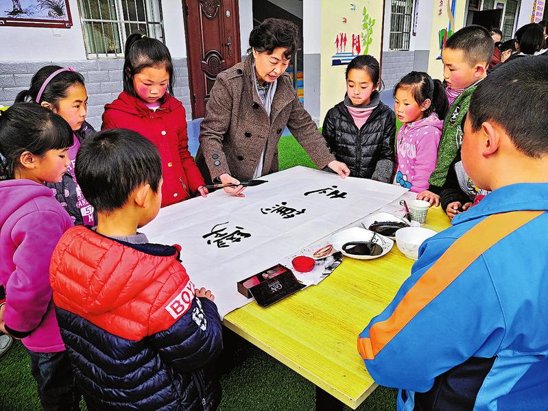 11月15日,洛南县书法家协会走进保安镇瓦子坪小学精心举办“书法进校园·汉字展魅力”活动,书法家手把手为学生指导执笔姿势、笔画书写、范字临摹,为师生们上了一堂生动有趣的书法课,学生们专注倾听、认真书写、兴趣高涨。 (姚渤潮 摄)