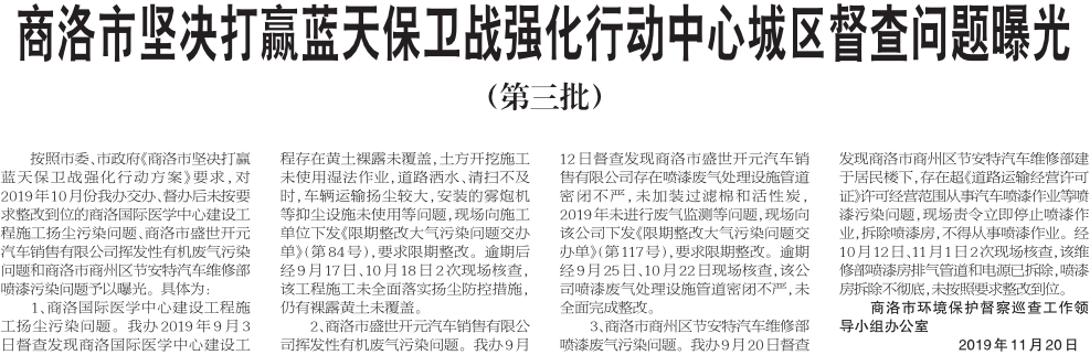商洛市坚决打赢蓝天保卫战强化行动中心城区督查问题曝光
