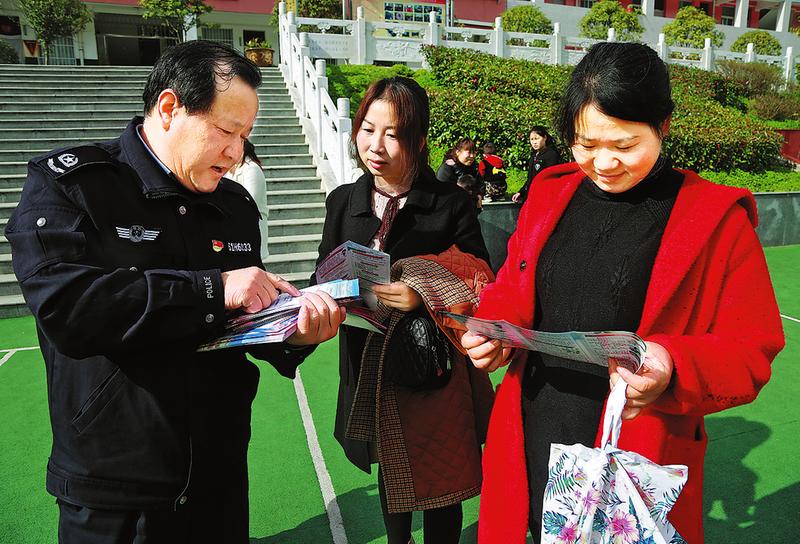 连日来,镇安县米粮镇司法所工作人员深入各学校和村民院落宣讲平安校园平安院落创建,发放平安建设宣传资料。 (陈绍有 摄)