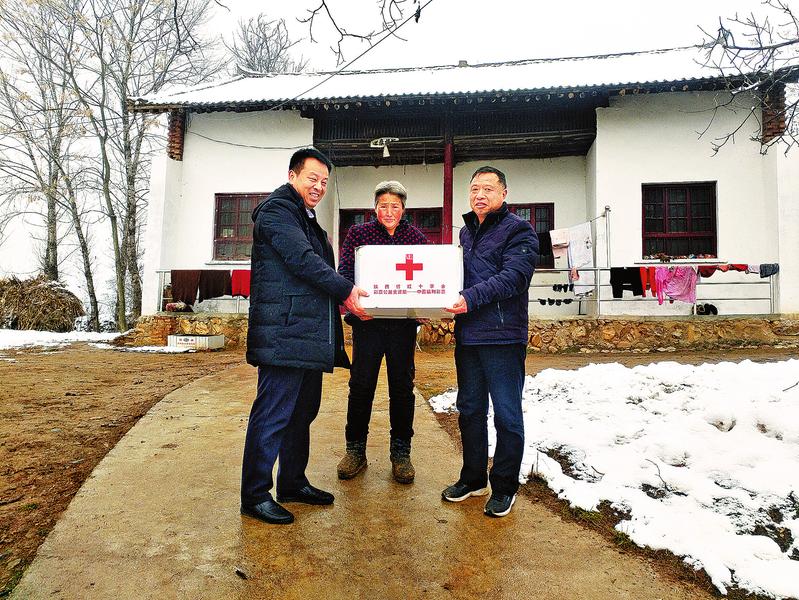 近日,洛南县红十字会开展“红十字博爱送万家”活动,县红十字会负责同志、驻村第一书记为贫困群众送去“家庭包”。此次活动以“送温暖、促脱贫,博爱助力惠民生”为主题,为期20天。目前共筹集慰问款9万多元,将惠及1000多个家庭,近3万人。(雷肖 摄)