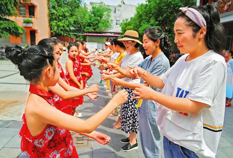 6月23日,丹凤县第一小学组织学生开展传统节日主题文化教育活动。学生们亲手设计制作香包、聆听辅导员老师讲解端午节习俗和由来,体验我国传统佳节的独特魅力。(郑志财摄)