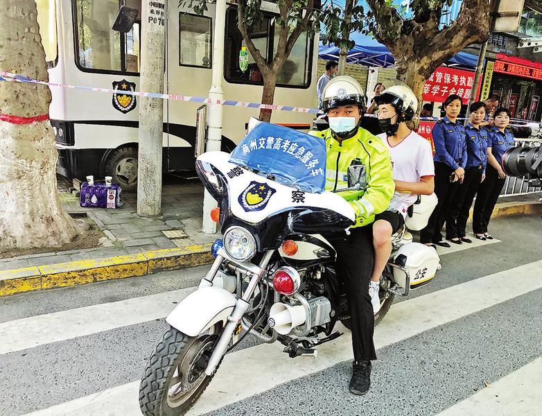 市交警支队商州大队民警为考生提供交通应急服务(方方 摄)