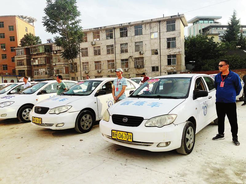 ▽7月6日,市区6所驾校组建“爱心送考”服务车队,在高考期间免费接送高考学生。(方方摄)
