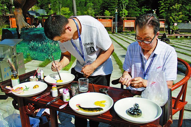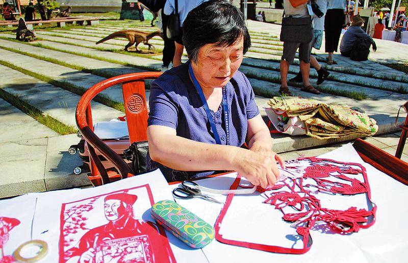 活动现场,搭建有商洛非遗文创展,集中展示商洛非遗文化、文创产品、旅游商品、特色美食,并举行了“商洛文旅产品”直播带货活动。镇安剪纸、面花、绒绣,商州狗娃咪等吸引了众多观众驻足欣赏。68岁的非物质文化遗产传承人侯启玉正在整理剪纸,据她介绍,镇安剪纸多以秦岭花草树木为主,配以鸟兽,让剪纸艺术看起来更加充满生机。来自西安的游客沈先生指着正在制作的镇安面花说:“这个做得太逼真了,有这个手艺真是了不起,如果可以的话,想给孩子带点回去,他肯定喜欢。”