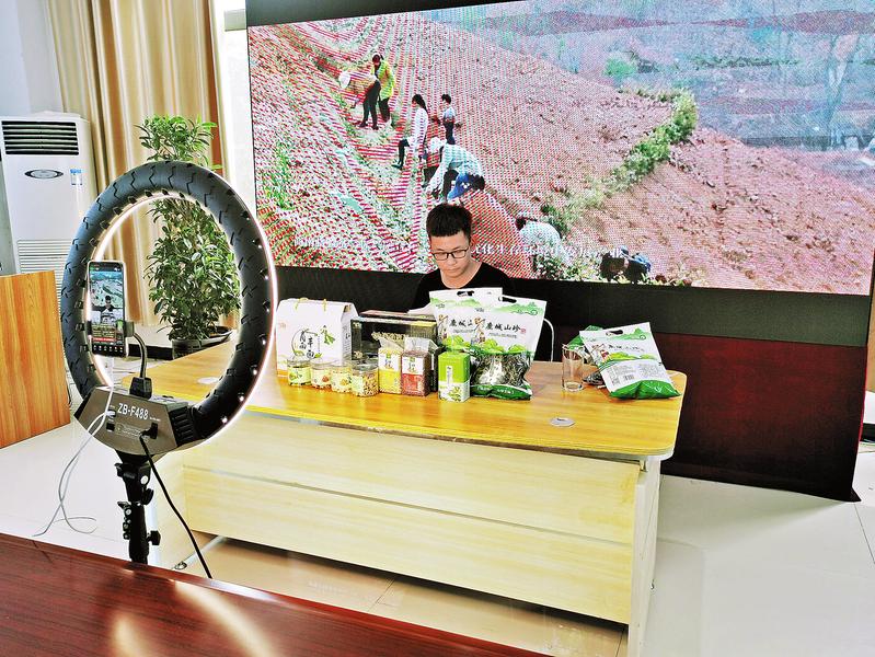 近日,在陕西众品驿站电子商务有限公司内,业务员通过电商平台销售农产品。据了解,该公司通过“消费订单+运营企业+农村电商服务站点经纪人+贫困户”的模式,发展电商产业。(见习记者 南玺 摄)
