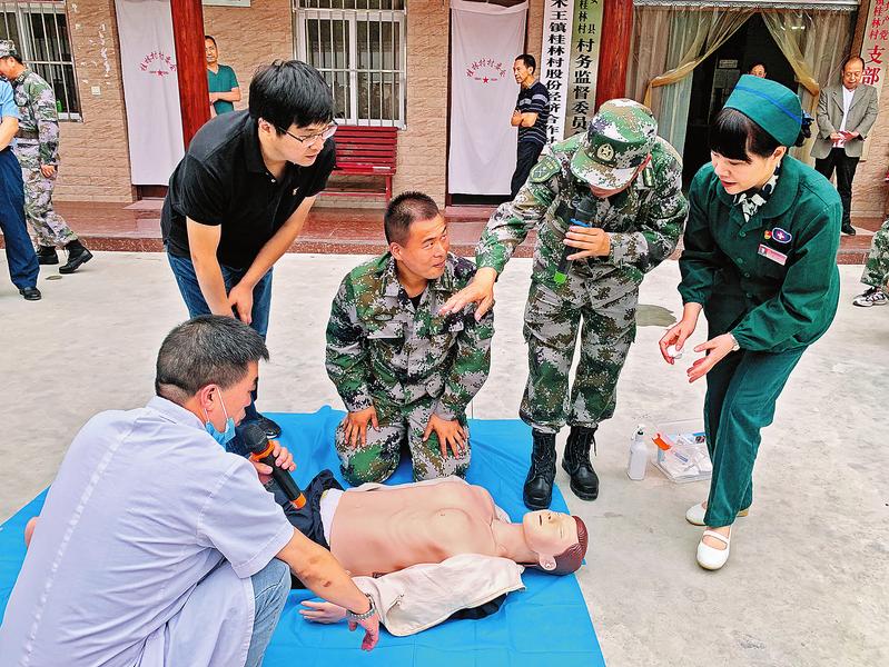 近日,镇安县人武部邀请唐都医院、镇安县医院的专家到县民兵训练基地,为参训民兵做抗疫事迹报告和防疫、急救知识培训。(骆传丽 摄)