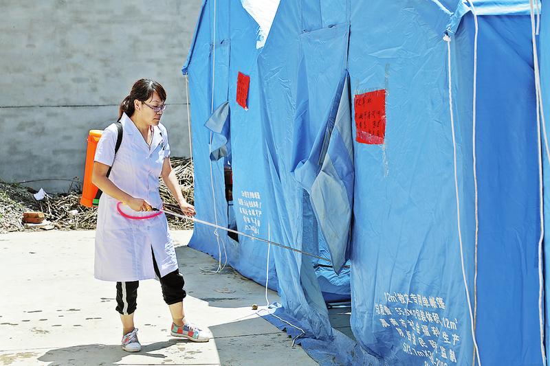 8 月 10 日,镇卫生院医务人员对安置点进行消毒。 本报讯(马泽平 谢非 党率航 杨森)8月10日下午2点,“8·6”洪灾的重灾区洛南县麻坪镇峪口村,灾后重建各项工作正在紧张有序开展。河道里,挖掘机正加紧疏通作业;峪口村第二安置点里,30多名受灾群众在吃午饭;沿途受灾群众家里,驻村工作队已转变为防洪抢险突击队,帮助群众开展生产自救……