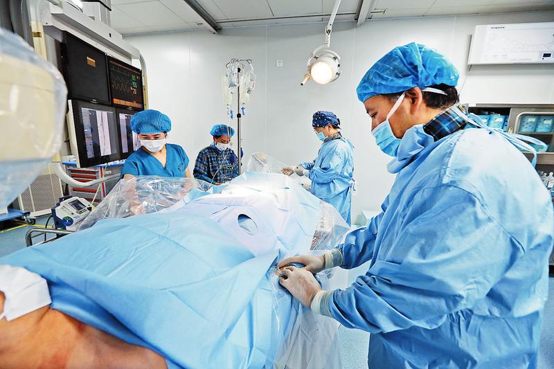 心脏介入诊疗手术创伤小、见效快,尤其对急性心肌梗死在第一时间内抢救生命极为重要。从手腕或大腿根部血管穿刺建立通道,利用导管、导丝直达心脏血管病变部位,进行血栓抽吸、球囊扩张或植入支架,从发病到血管开通时间越短效果越好。对冠心病引起的心绞痛,手术后症状可明显得到改变。