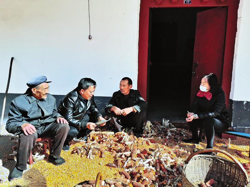 近日,丹凤县气象局组织帮扶干部深入到峦庄镇元潭村,耐心细致地向村民讲解平安创建知识,发放“平安创建我知道、扫黑除恶我知道、社会治安我满意、政法干警我满意”调查问卷。(王亚玲 摄)