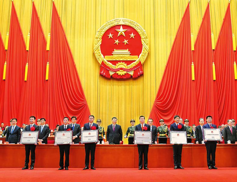 李克强主持大会,汪洋宣读表彰决定,栗战书、王沪宁、赵乐际、韩正、王岐山出席。