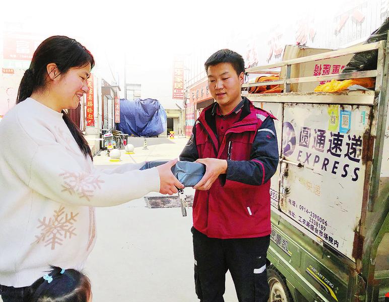 今年27岁的李卫平是商州区沙河子镇人,职中毕业后,到江苏一家电子厂打工。结婚后,他回到了老家,最终选择了圆通快递员岗位。李卫平坦言,这工作虽然辛苦,但是薪资还不错。