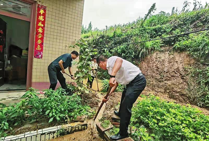针对近期持续降雨,容易引发洪涝灾害的实际情况,商南县富水镇茶坊村党支部认真落实“人盯人”防汛动态监测机制,组织党员干部帮助群众疏通房前屋后排水沟渠,排除汛情安全隐患,以实际行动深化“我为群众办实事”实践活动。(记者 胡蝶 摄)