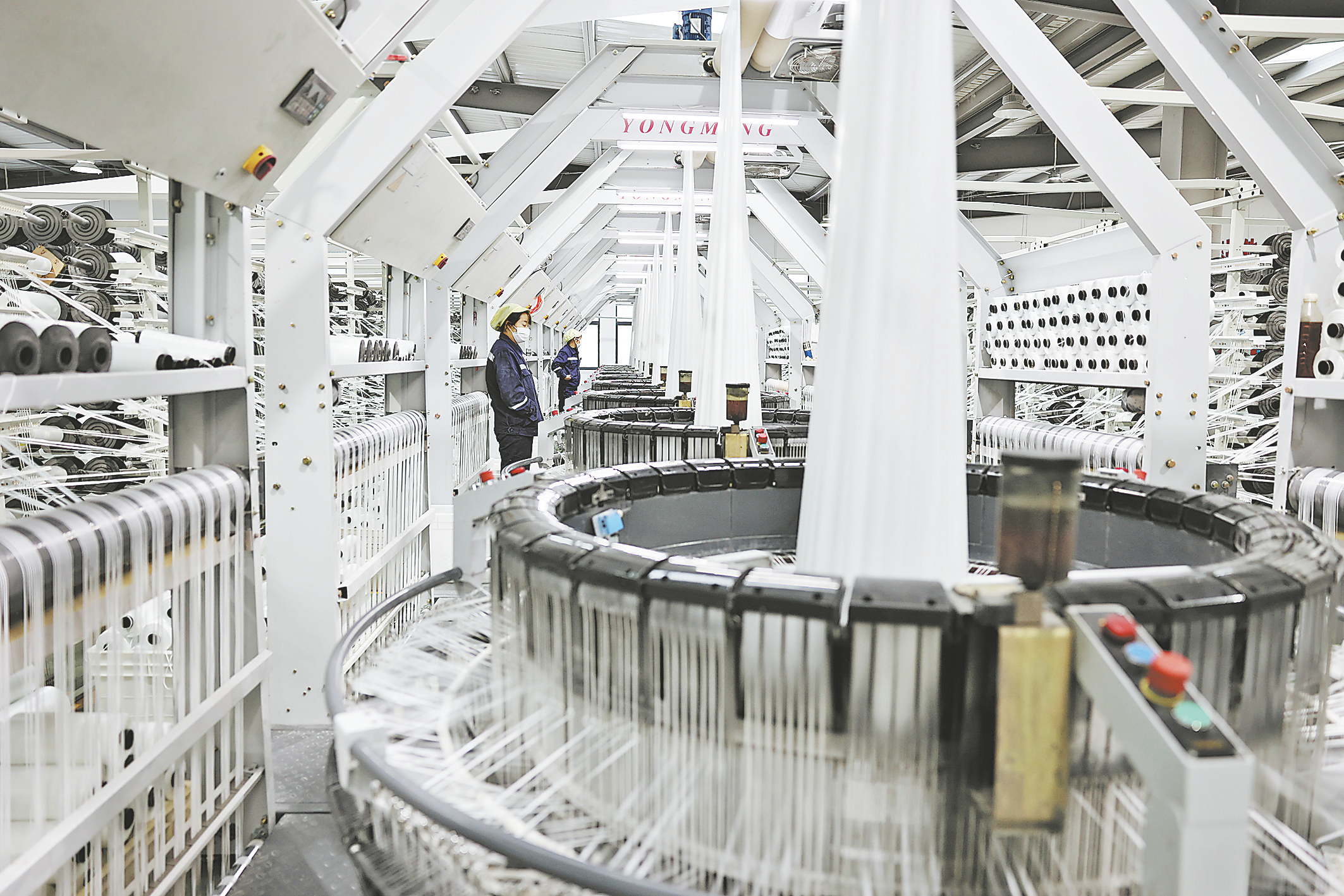 近日,在镇安县县域工业集中区柏宏欧利塑业环保方底阀口袋生产线上,工人正在加紧生产环保编织袋。该生产线引进德国技术,产品绿色环保,畅销国内国际,带动解决600多人就业。
