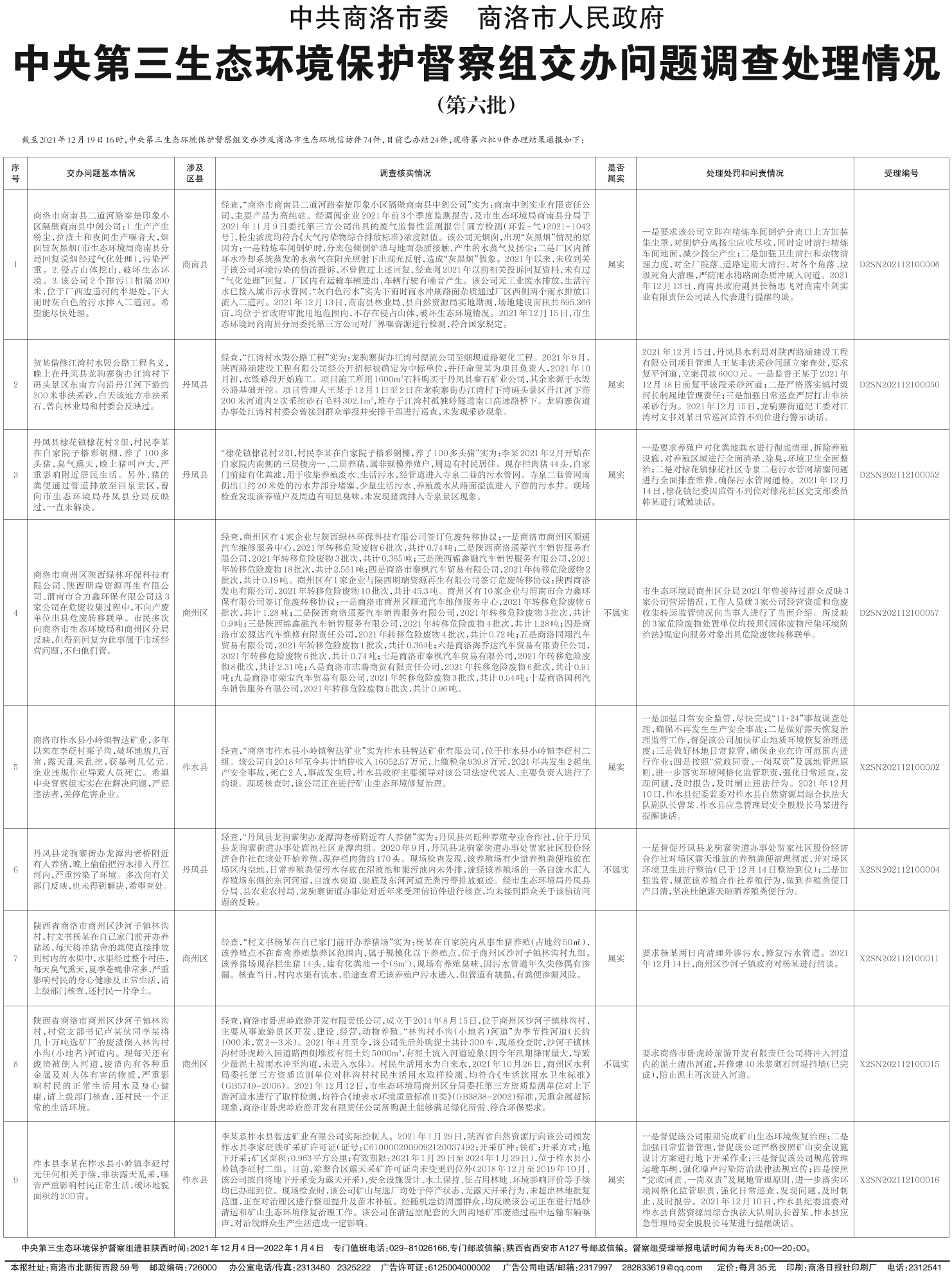 中央第三生态环境保护督察组交办问题调查处理情况