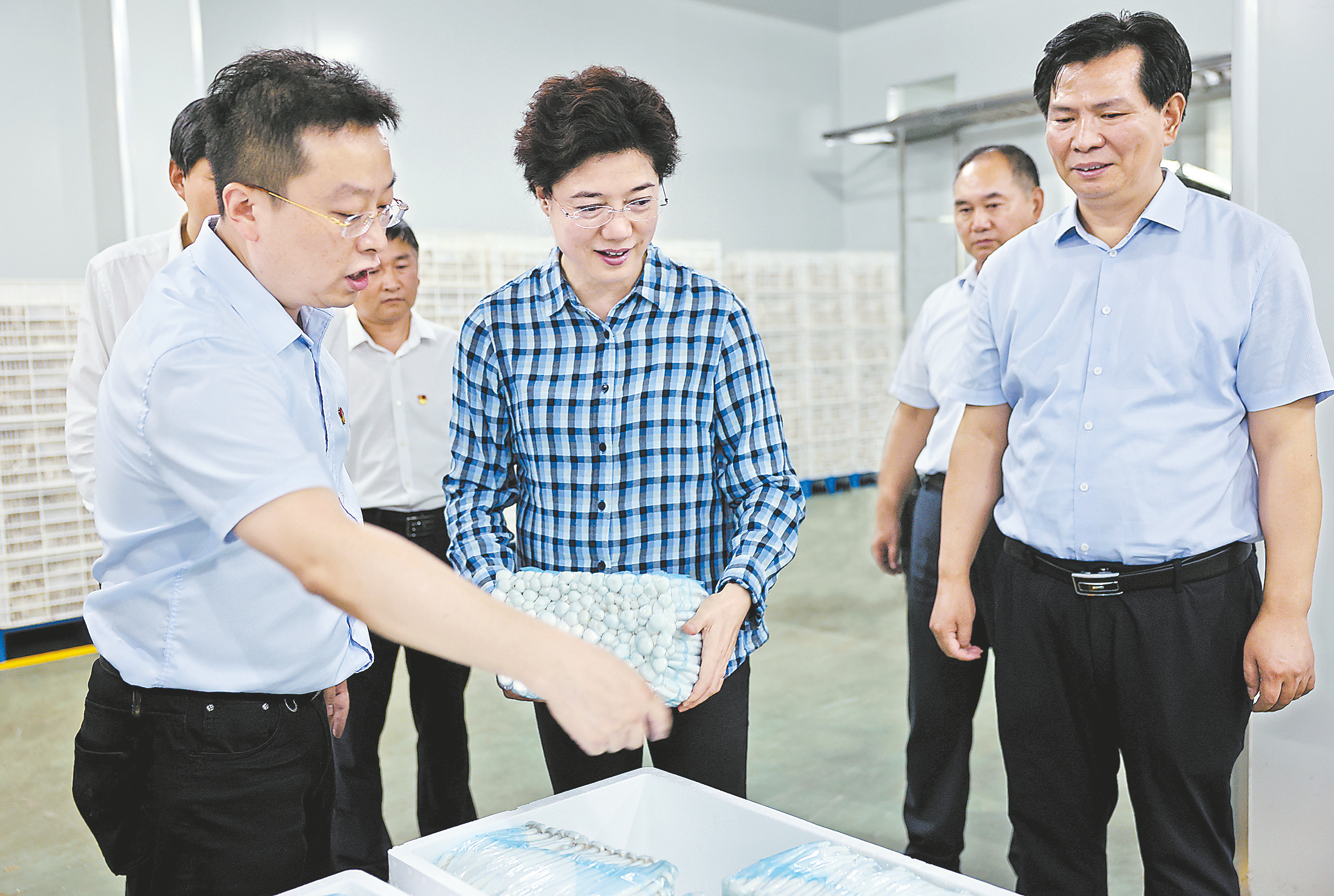 在山阳高新区陕西迈思普电器有限公司和山阳瑞裕电子科技有限公司,赵璟走进生产车间,现场查看企业生产经营状况,仔细询问产品销售、务工群众收入、为企服务等情况。她指出,要优化提升营商环境,发挥园区聚集作用,持续开展精准招商,加快延链补链强链,打造县域经济高质量发展的强力引擎。在和丰阳光食用菌产业园,赵璟听取食用菌发展情况介绍,深入厂房实地察看食用菌长势和产品包装销售等情况。她强调,要立足资源禀赋,持续发展壮大特色产业,健全完善利益联结机制,促进群众充分就业、稳定增收。