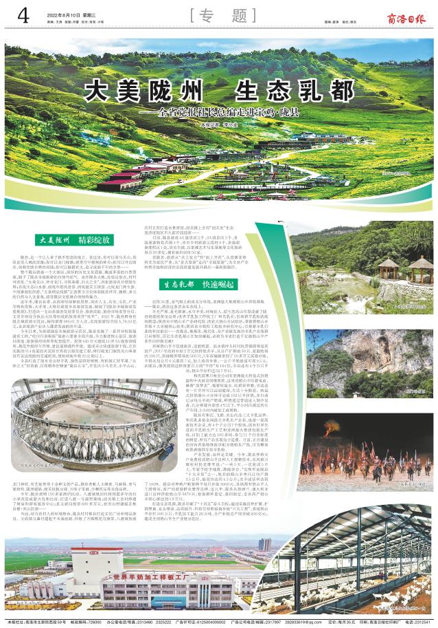 冬无严寒,夏无酷暑,水草丰美,环境宜人,原生态高山草原成就了陇县奶源的黄金品质;世界羊乳加工样板工厂和氏乳业,引领着羊乳粉的高端制造;陕西关中奶山羊产业研究院、西农大奶山羊试验站,掌握着奶山羊养殖十大关键核心技术;陕西省羊奶粉工程技术研究中心,引领着羊乳行业的科技前沿……在陇县,规模化、现代化、全产业链发展的羊乳产业集群已具雏形,百亿生态乳都正在加快崛起,必将为全省打造千亿级奶山羊产业作出积极贡献!